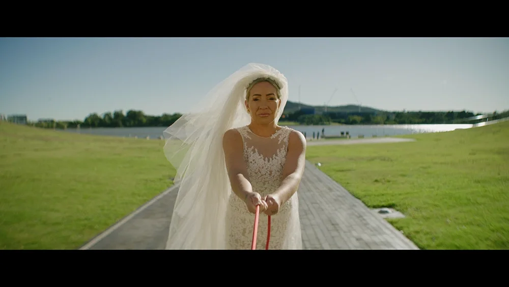 The Lodge is a ceremonial moving image work by Wiradyuri artist Amala Groom that reclaims Canberra’s Parliamentary Triangle—a colonial site on Ngunnawal Country—as sacred ground. Through performance, ritual, and sacred geometry, Groom activates the landscape as a site of spiritual sovereignty. The work maps a path through geometric forms—triangle, circle, vesica piscis, and more—drawing on their ancient metaphysical meanings to transform the built environment into a living mandala. Influenced by the Theosophical ideals embedded in the city’s design by Walter and Marion Griffin, Groom repositions these esoteric frameworks through a First Nations lens, critiquing their colonial entanglements while honouring their latent energetic potential. Referencing the duality of the White and Black Lodges from Twin Peaks, she locates the Parliamentary Triangle as a vortex of colonial power—and reclaims it through embodied resistance. The Lodge invites audiences into a ceremony of deep seeing, revealing the spiritual architecture of Country beneath imposed order.