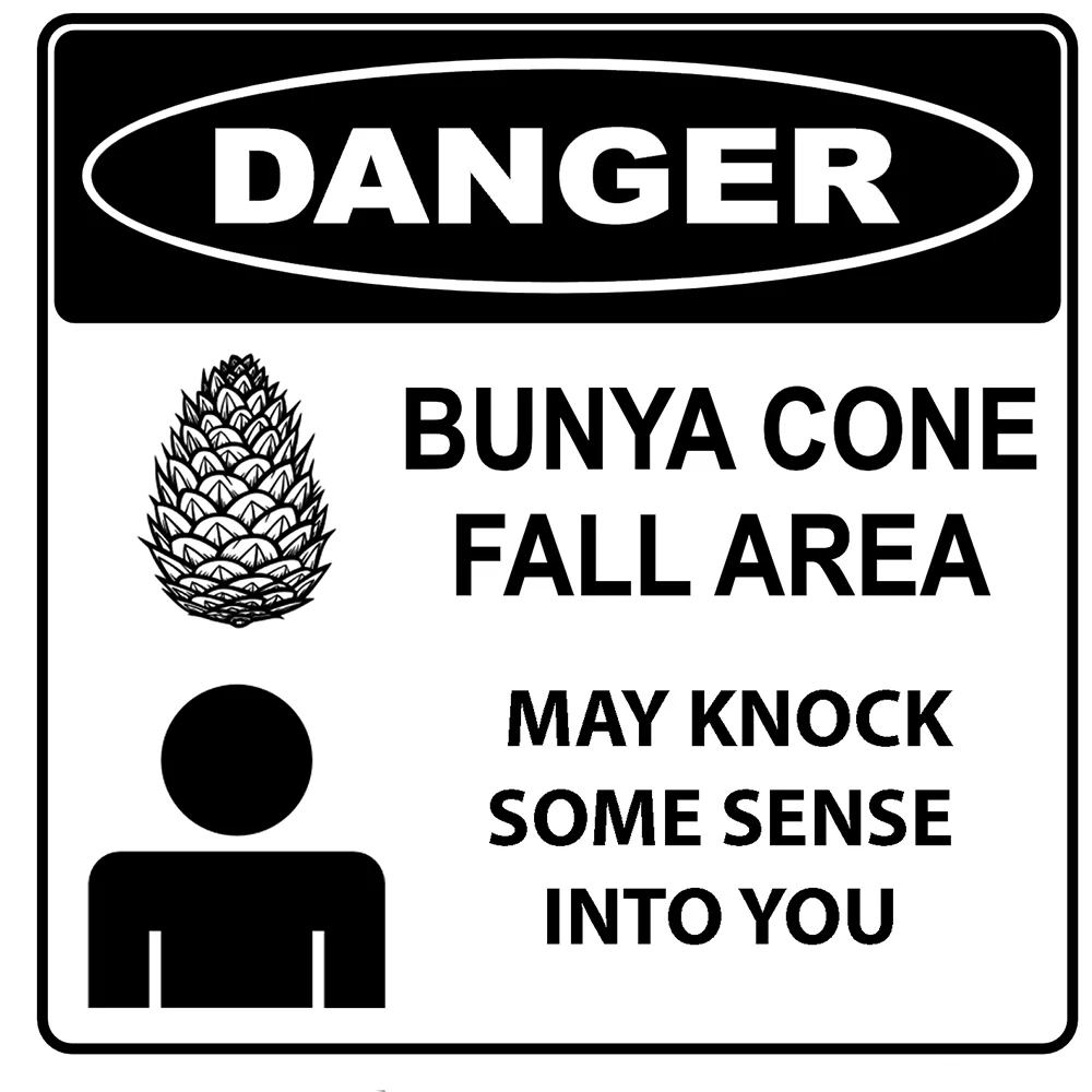 The Bunya Drop Zone poster is an homage to the staple food source that has sustained our people over many generations. Once plentiful from the Sunshine Coast to the Bunya Mountains the gathering for the bumper crop was an opportunity to trade, sort disputes, marriages, share stories through dance and song.