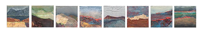 Robyn Kinsela | Views of a Summer on Edge | 2020 | mixed media and collage on 8 canvases | 10 x 95cm