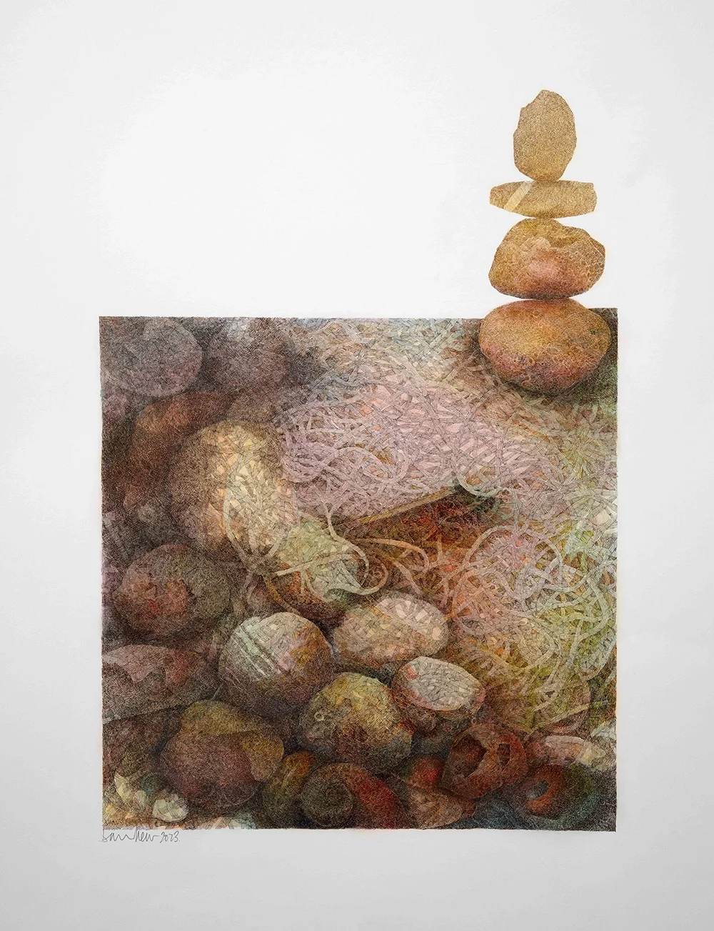 In a dank and muddy woodland a young boy wrapped in a serge overcoat, Wellington boots and muffler concentrates on arranging sticks and stones in great circles and cairns when through the dusk came the call “Andy come in and have your tea.”