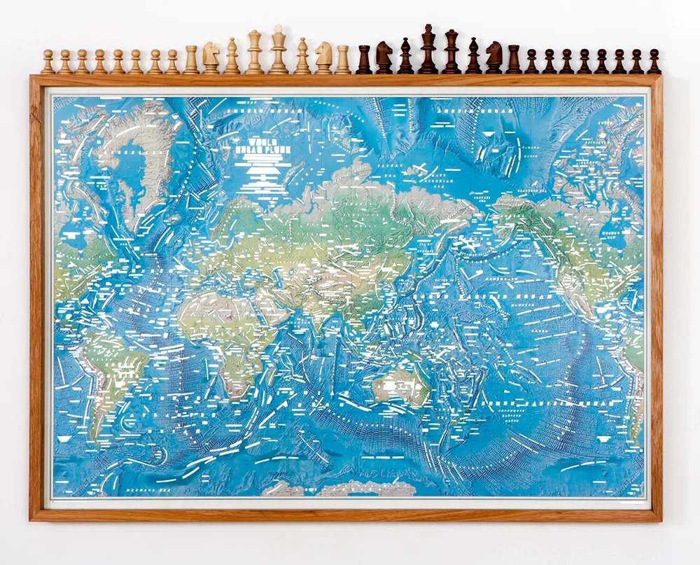 Drawing Room | 2024 | map, mirror, wood and custom frame | 110 x 86.5cm
