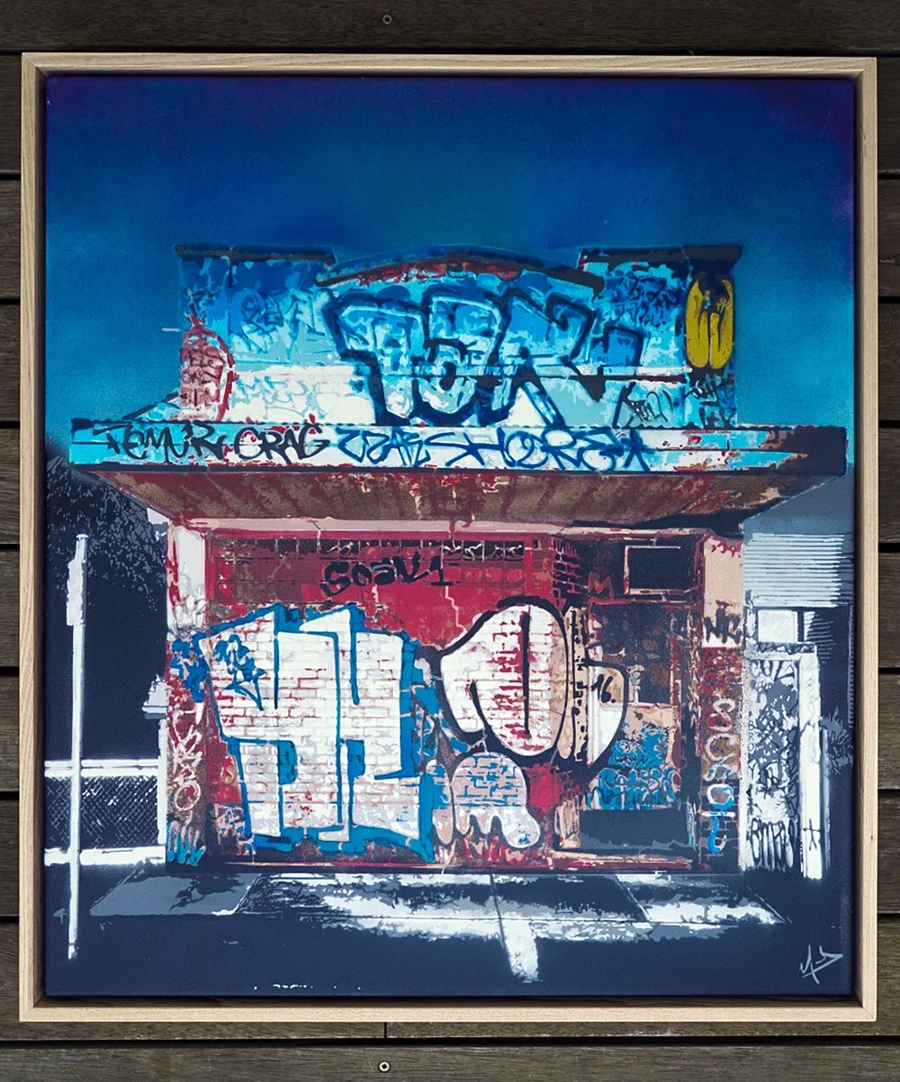 Through the art of stencilling, Logan Moody merges photorealism and urban commentary, blending tradition and innovation. Since 2006, Moody's art has evolved from single-layer stencils to intricate, multi-layered pieces, reflecting meticulous craftsmanship. Inspired by the urban landscape, his work explores urbanisation, nostalgia, and sustainability, inviting viewers to ponder life's nuances amid the concrete jungle.