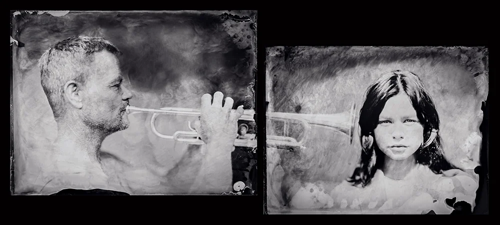 I’ve been working in wet-plate collodion for a year. This was the leading photographic technology from 1851 to around the 1880’s. A glass or metal plate is coated in gun cotton dissolved in ether and soaked in silver nitrate. The plate is sensitive to light for as long as it is wet – about five minutes – which pins my practice to a studio and darkroom. I’ve been learning the alchemy of the process by photographing friends, family and workmates. Consistency is difficult, so I’ve been challenging myself to shoot multiple plates that frame well together.
