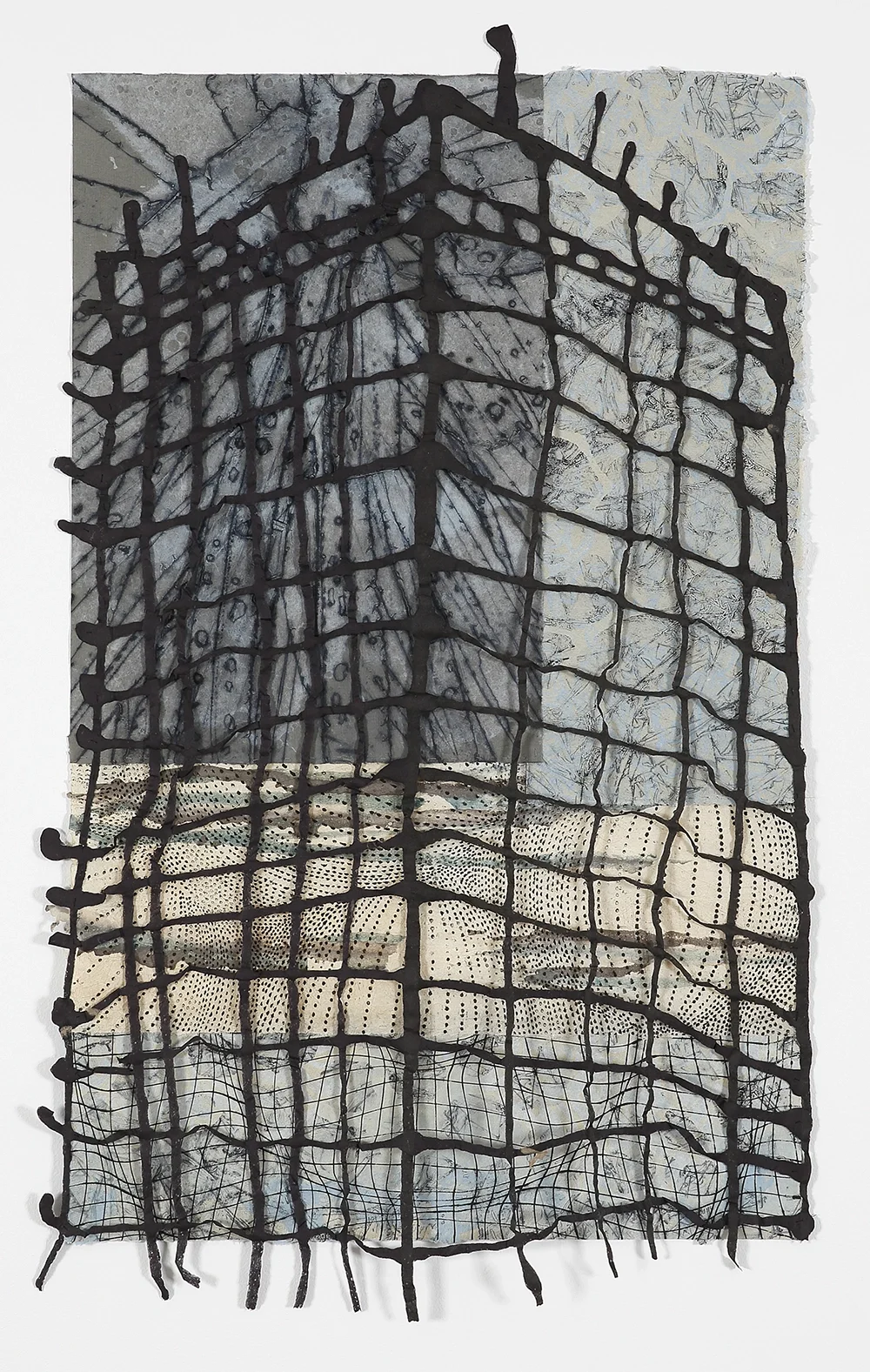 encroach | 2023 | handmade papers, pulp paint drypoints and stitching | 97 x 55cm
